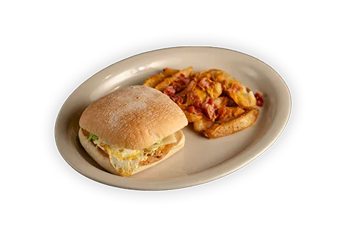 Sweet & spicy bacon, pecan wood-smoked shoulder bacon, one over-medium egg, and bacon habanero jam on ciabatta bread. Served with a potato side.