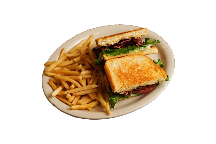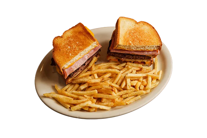 Grilled Hamburger Patty stacked on Texas Toast and topped with French Fries, BrownGravy, Cheddar Cheese and Grilled Onions.