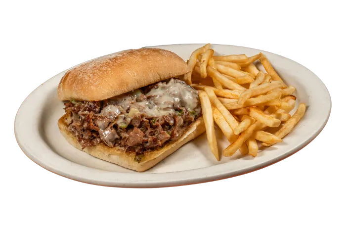 Philly Steak, Onion, Bell Pepper, Topped with Queso.
