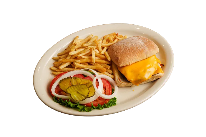 Yourchoice of American, Swiss, Pepper Jack or Cheddar Cheese. Served with Lettuce, Tomatoes, Pickles & Onions on the side.