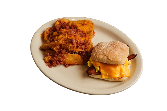 English muffin, turkey patties, onions, and bell peppers, topped with our Granny’s Southwest sauce.